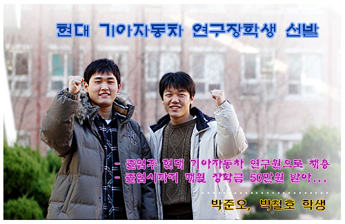 ÀÌ¿¡µû¶ó ¹Úöȣ, ¹ÚÁØ¿À ÇлýÀº Çö´ë¡¤±â¾ÆÀÚµ¿Â÷¿¡¼ Á¤ÇÑ ÀÏÁ¤±â°£ÀÇ ±³À°°úÁ¤À» À̼öÇϸé Á¹¾÷ÈÄ Çö´ë¡¤±â¾ÆÀÚµ¿Â÷ÀÇ ¿¬±¸¿øÀ¸·Î ä¿ëµÇ°í, Á¹¾÷½Ã±îÁö´Â ¸Å¿ù 50¸¸¿øÀÇ ÀåÇбÝÀ» ¹Þ°Ô µÇ¾ú´Ù.